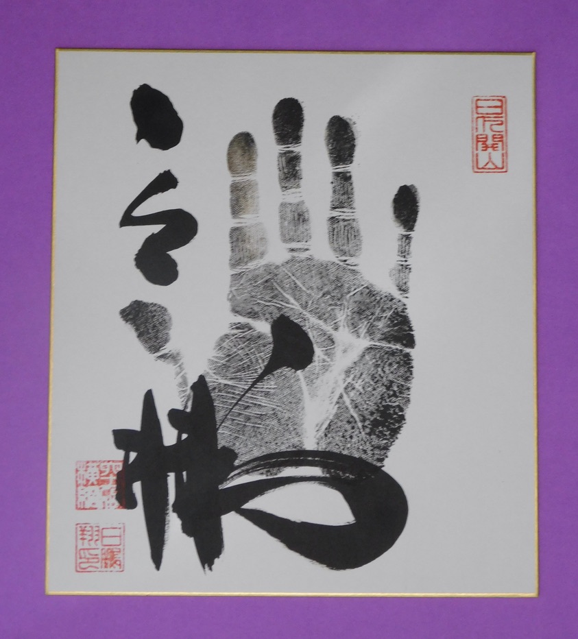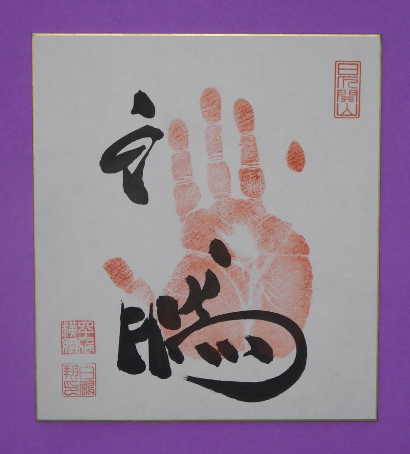 Tegata made while a rikishi is at Yokozuna rank will have the stamp marking Yokozuna top right, their name is stamped bottom left, as is their Yokozuna number stamp (Terunofuji has 73rd Yokozuna above his name)