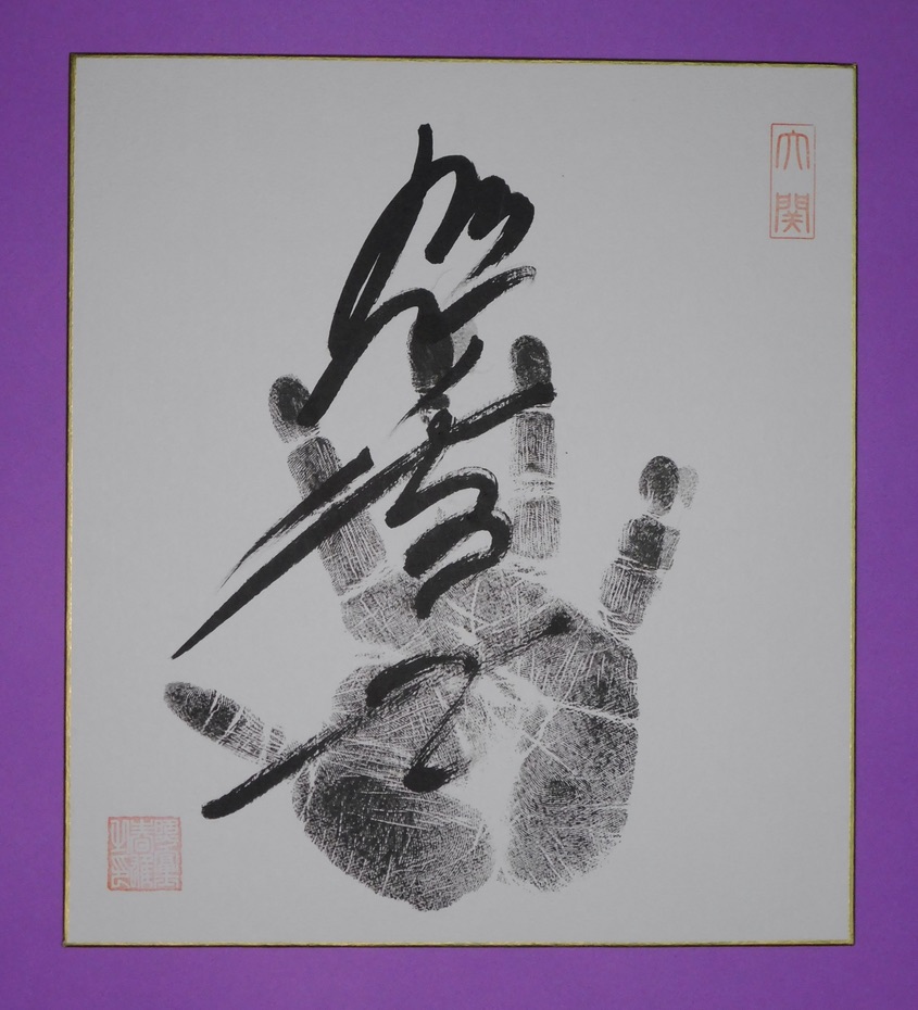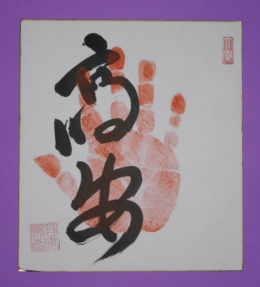 Tegata made while a rikishi is at Ozeki rank will have their name stamped bottom left, and the stamp marking ozeki top right.